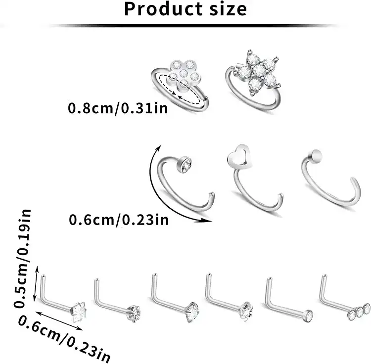 Our nose cuff set comes in 12 different styles, nose cuff these designs are so unique and a must-have set for nose cuff lovers! They will be a great look with no commitment for an un-pierced nose. And also a stylish way to try out a nose ring before getting an actual piercing gold nose cuff.