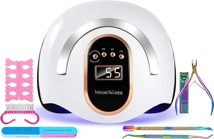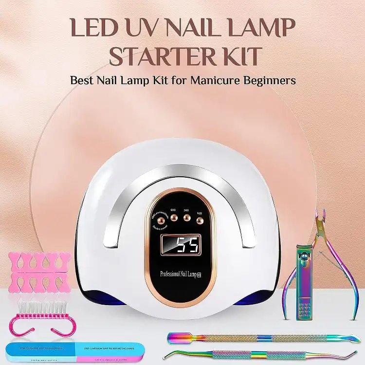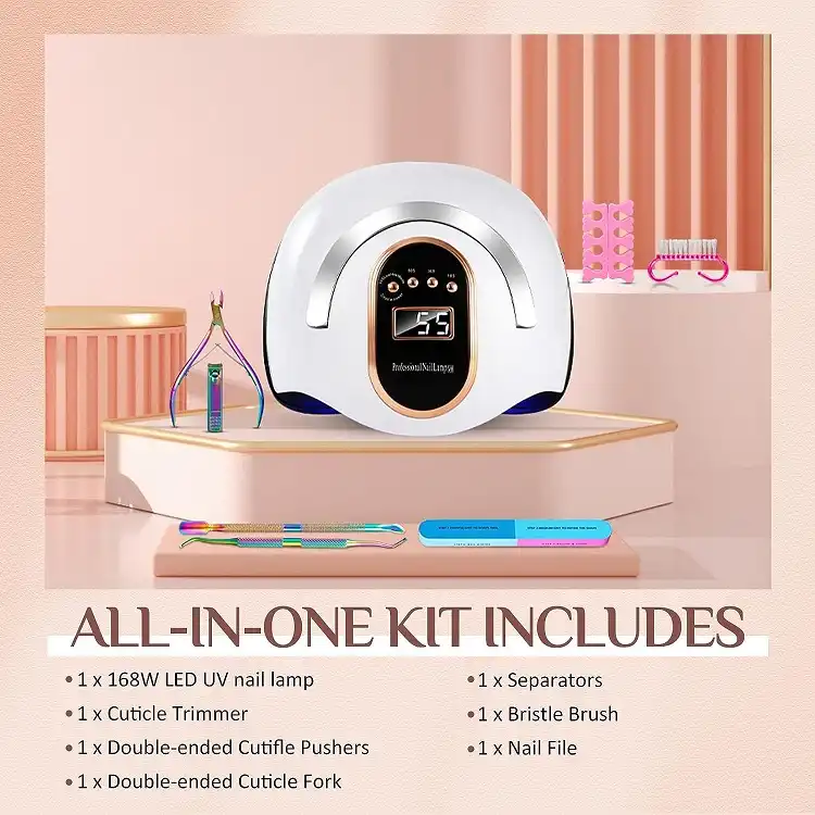 168W Led UV LED Nail Lamp with 7pcs Nail Manicure Kit, Gel Nail Lamp Starter Kit with LCD Screen/4 Timer Setting/Auto Sensor, UV Lamps for Gel Nails DIY Tools for Beginners Women Gift