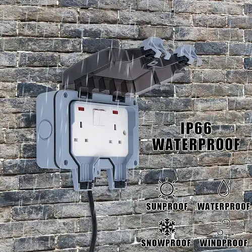 This outdoor socket using high quality PC material, UV protection, corrosion resistance. This product is installed vertically and is guaranteed to be closed. The waterproof rating can reach IP66.