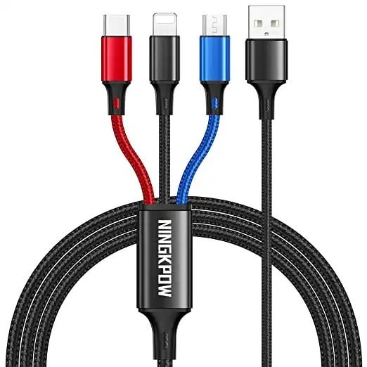 3 in 1 Multi Charging Nylon Cable with Micro USB, Type C Lightning for iPhone 14 13 12 11 and Android Galaxy S22 S21 S20, Huawei, OnePlus, Kindle, USB-C