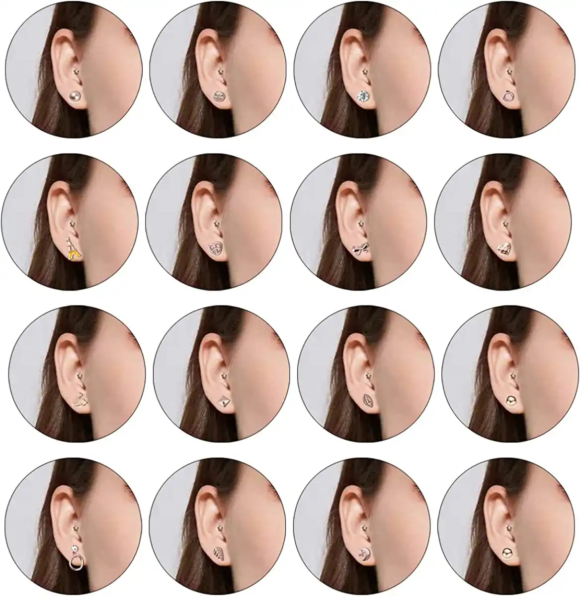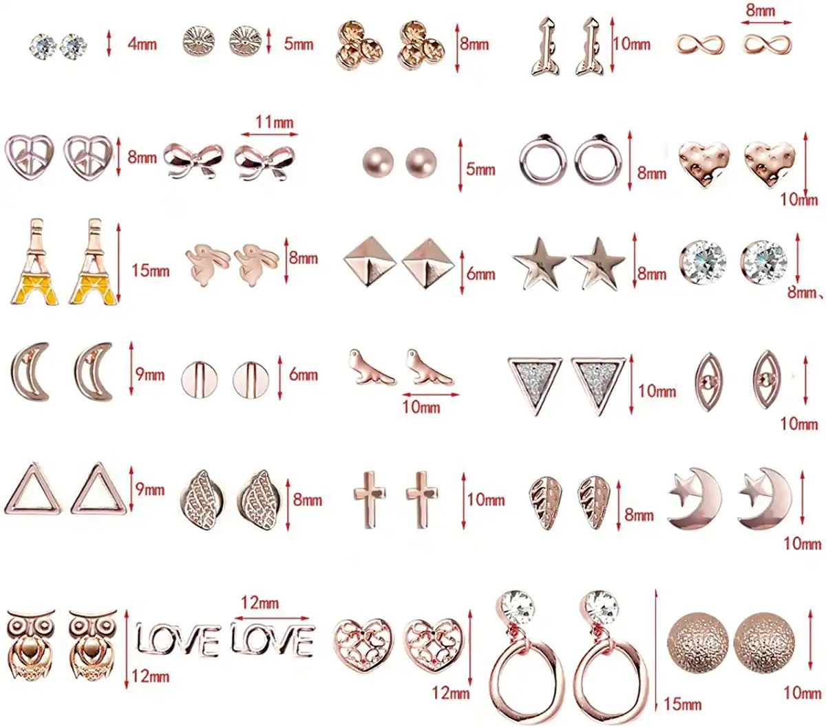 A set of 30 pairs (silver + gold + rose gold) in 30 styles. Delicate hollow lotus flowers, sparkling cubic zirconia leaves, lovely starfish, stylish geometric shapes, elegant pearl designs, unique and eye-catching, try a different pair every day, every day is a hundred times more beautiful.