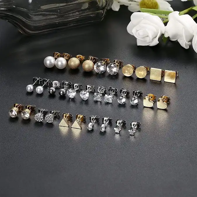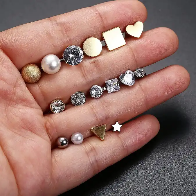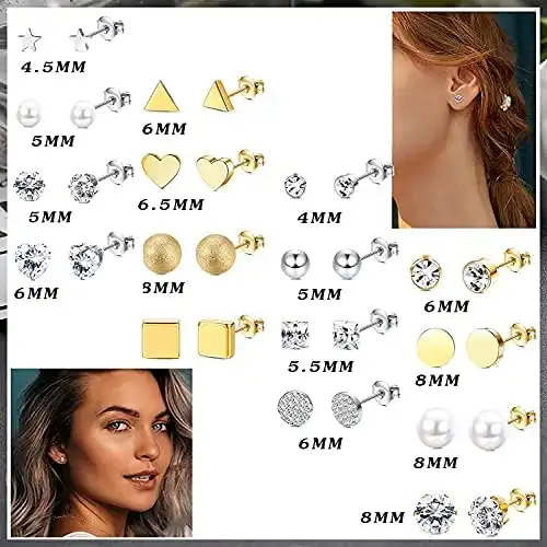 One Order Comes With 16 Pairs Different Style Stud Earrings, Including Ball Studs, CZ Studs, Pearl Studs, Heart/Star/Square/Triangle Studs; Can be Worn in Different Occasions, They Go With Absolutely Everything From A Casual Outfit, To Dressing Up And Going Out For The Night. Catch Fashion Trends & Be The Most Eye-catching One.