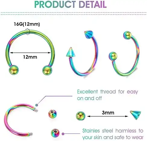 Including 44 Pieces of Multiple Different Sizes of Circular Horseshoe Barbell Piercing Jewelry in 2 Styles(Ball Closure and Spike Closure) septum piercing.