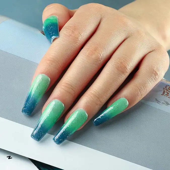 6 Colour Changing Gel Polishes: This kit has 6 colour changing gel polishes which can change colours when temperature changes. The gels will show the different colours when the nails soak in cold water and warm water. It will become darker when it in the warm water, and light when soak in the cold water