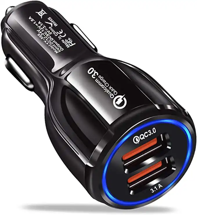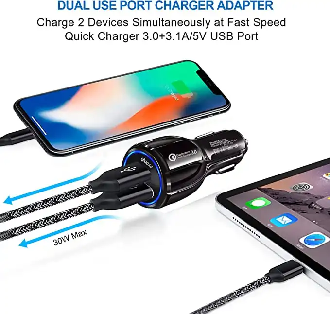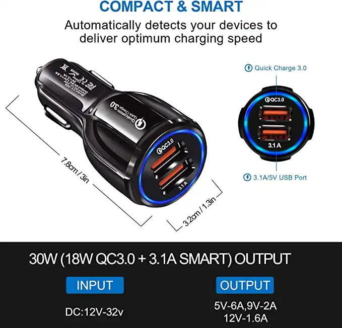 USB Car Adaptor, 2 Port USB 3.0 Car Cigarette Lighter Phone Charger 30W 5A Fast Charging Compatible with iPhone Samsung Galaxy iPad Huawei