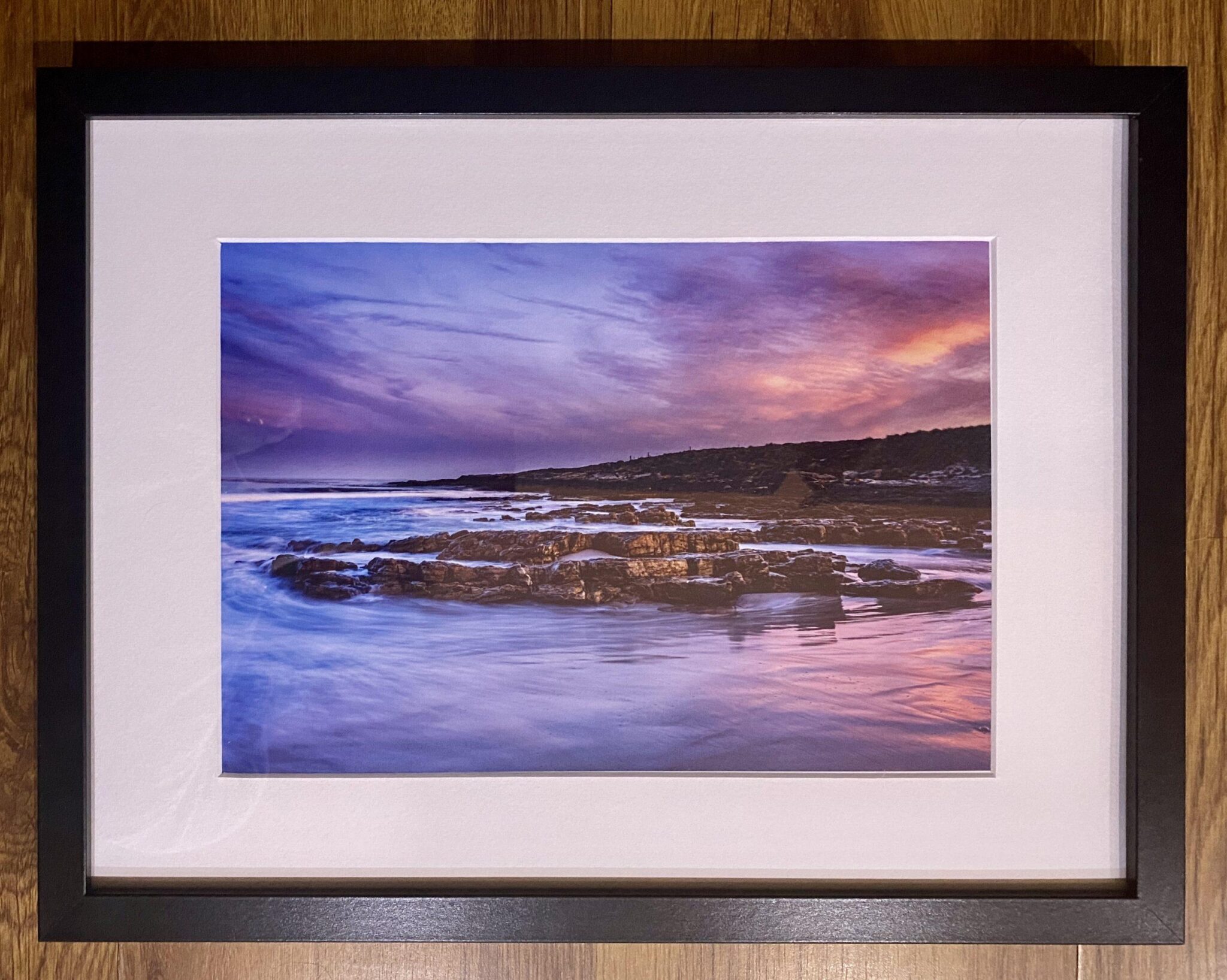40*30 Framed photographic print of Rookery Bay, Falklands at sunset