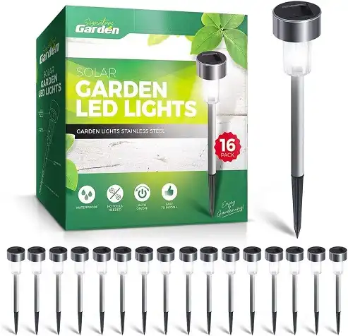 - SIXTEEN PREMIUM STAINLESS STEEL DESIGN LIGHTS TO COVER YOUR PATH! Bright clear warm light shines forth from each waterproof LED lantern. Position them on your path or as a fence for the ultimate in beauty AND safety!