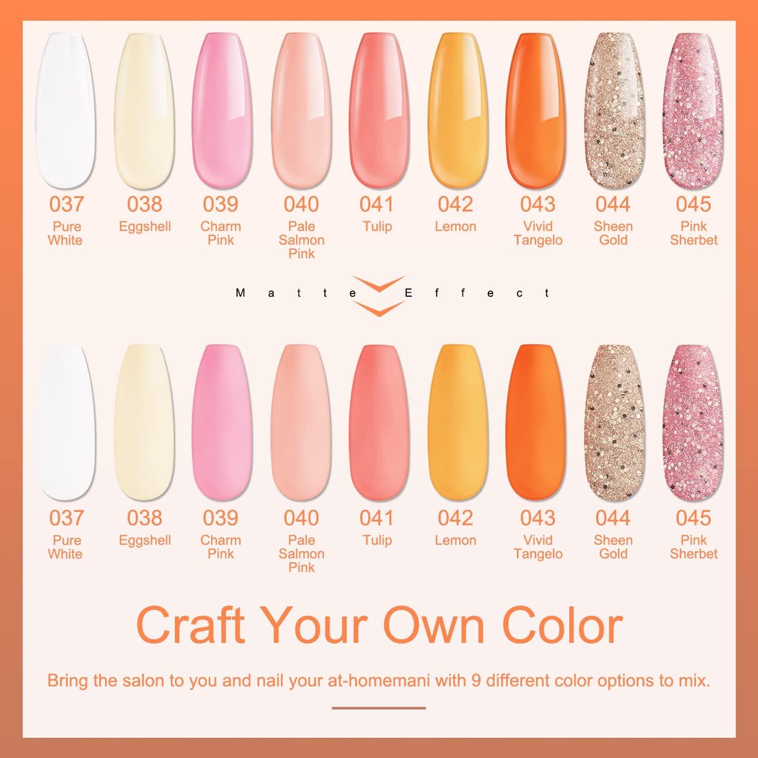 Mature-Charming Complex:9 colours are well-selected in this collection.In the prosperous city,release your beauty of charming as you like.Is a perfect set for a classic for a modern take on the style!You can do a solid color nail art salon, or mix more colors to create a unique color with the no wipe matte top coat.