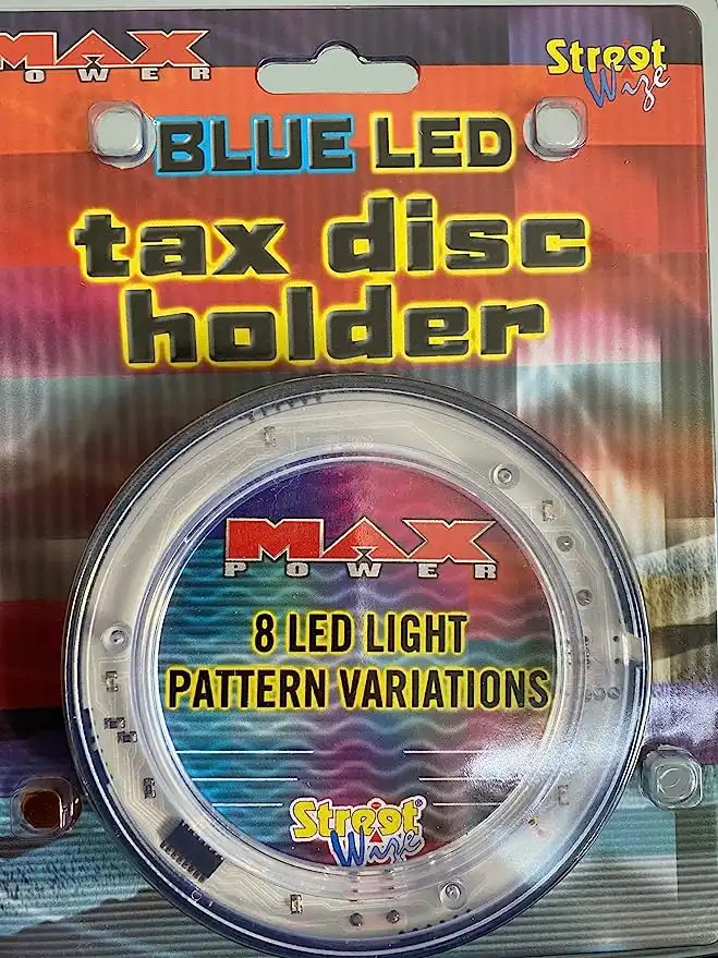 Flashing LED Car Tax Disc Holder in Bright BLUE LEDs – With 8 LED Pattern Variations