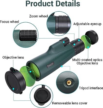 【You Will Get】 1 x High Definition Monocular Telescope, 1 x Adjustable Tripod, 1 x Smartphone Holder, 1 x Lens Cover, 1 x User Manual, 1*Lanyard. Dsoon monocular is ideal gift for women, men, hunters, kids and outdoor enthusiasts
