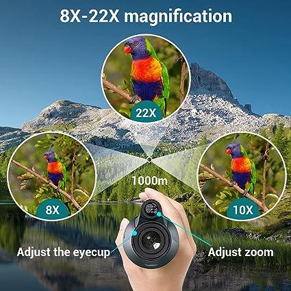 【High Resolution & Night Vision Function】HD Monocular Binoculars with high quality optics, BAK-4 prism and FMC lens, light transmittance reaches up to 99.5%, ensuring realistic images. With the low light night vision function, you can get high quality images even in low light conditions, giving you an unexpected viewing experience.